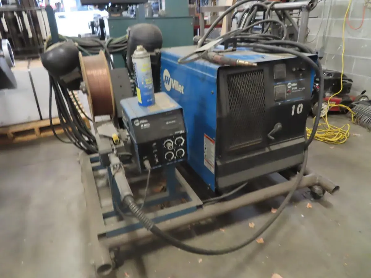 No longer used by owner; part of a surplus equipment reduction. Welder not inspected under power; to the best of my knowledge and owner input, welder is fully functional. Comes with wire feeder, welding torch, helmets, and cart with casters.